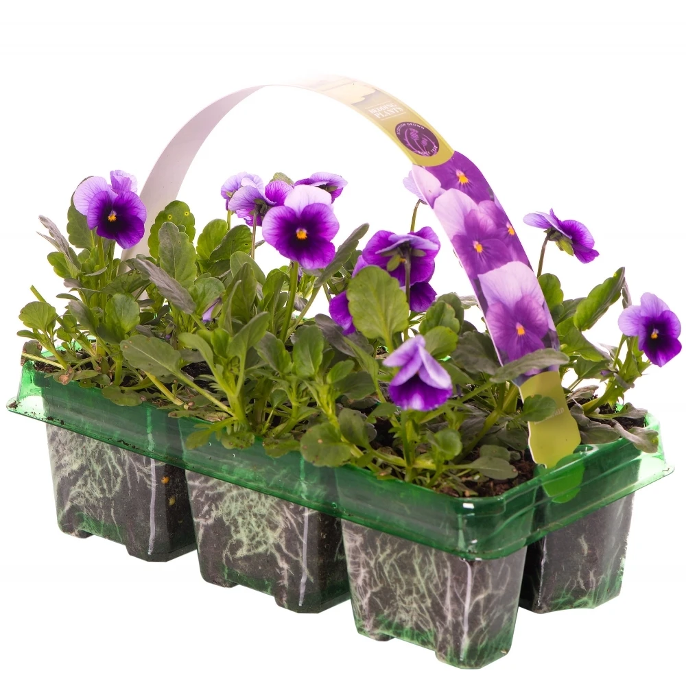 This 6 pack of Viola Beaconsfield bedding plants have a gorgeous design within their petals, making them standout in flower beds and plant displays. A bright yellow bud features in the centre of the flower, with dark shades of black and purple dispersing from there. On the outer section of the petals, a white colour fills the area to bring an elegant contrast to the darker colours. These plants will flourish above lush, green foliage when they bloom in Autumn, right through to Spring. They can be planted straight from the tray upon arrival, flourishing with ease when given the correct care.