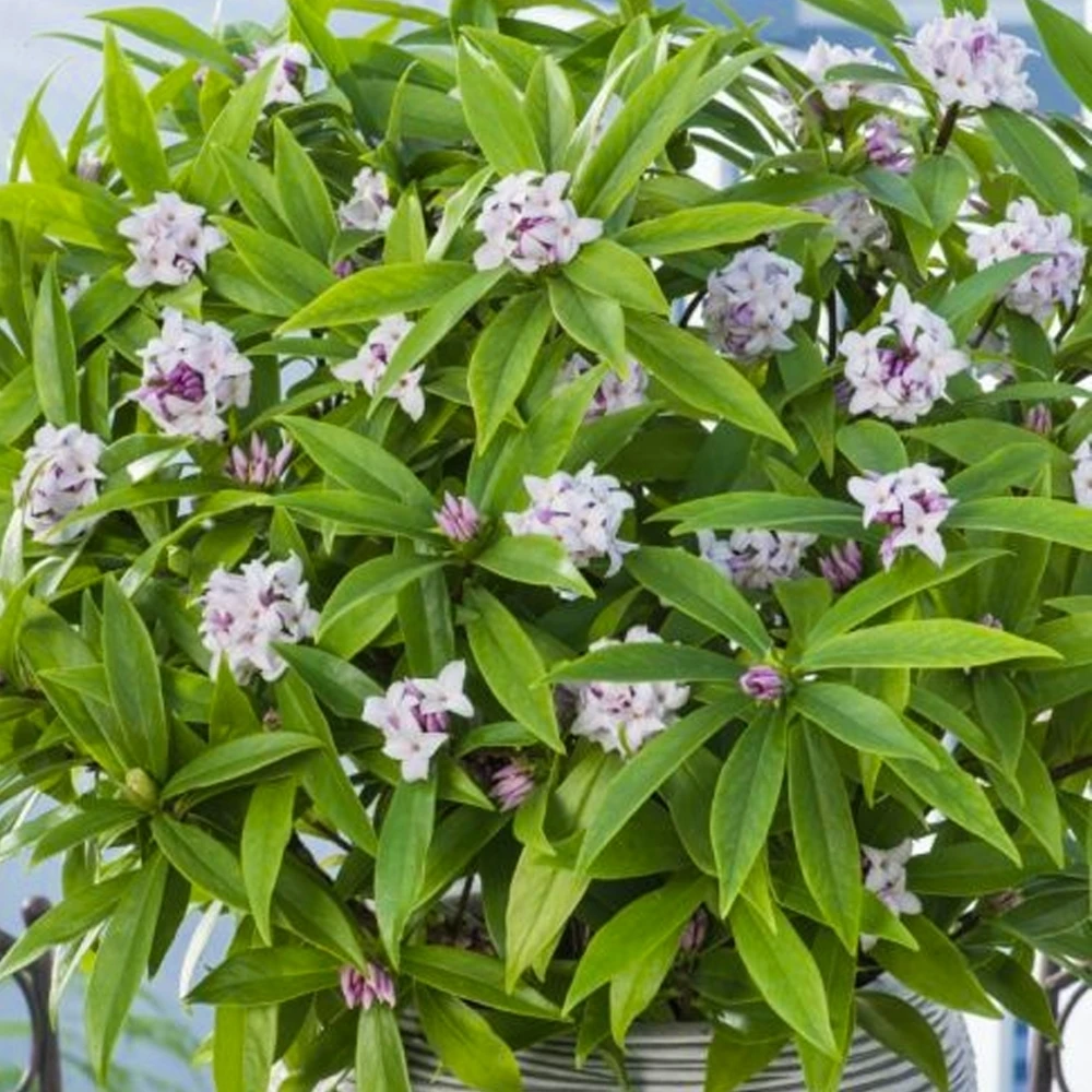 A more modern variety with larger flowers and a great scent. The Daphne ‘Perfume Princess’ is touted by some as “The most fragrant Daphne shrub in the world”. Its long, leathery dark green foliage grows densely with clusters of highly fragrant, deep pink flowers blooming all over the stems and throughout the foliage in Spring, fading to pale white as they mature. A lovely compact species which is perfect for container and patio planting.