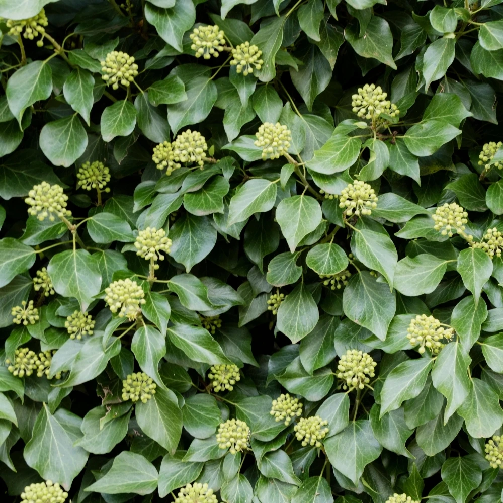 Hedera helix Hibernica is a vigorous evergreen climber with lobed variegated green leaves and small green flowers in autumn, to be followed by black winter berries, that birds and other wildlife will enjoy as a food source, in the colder months. This fast growing ivy is ideal for covering walls and fences and will keep its foliage year-round, making it a fantastic choice for any garden.