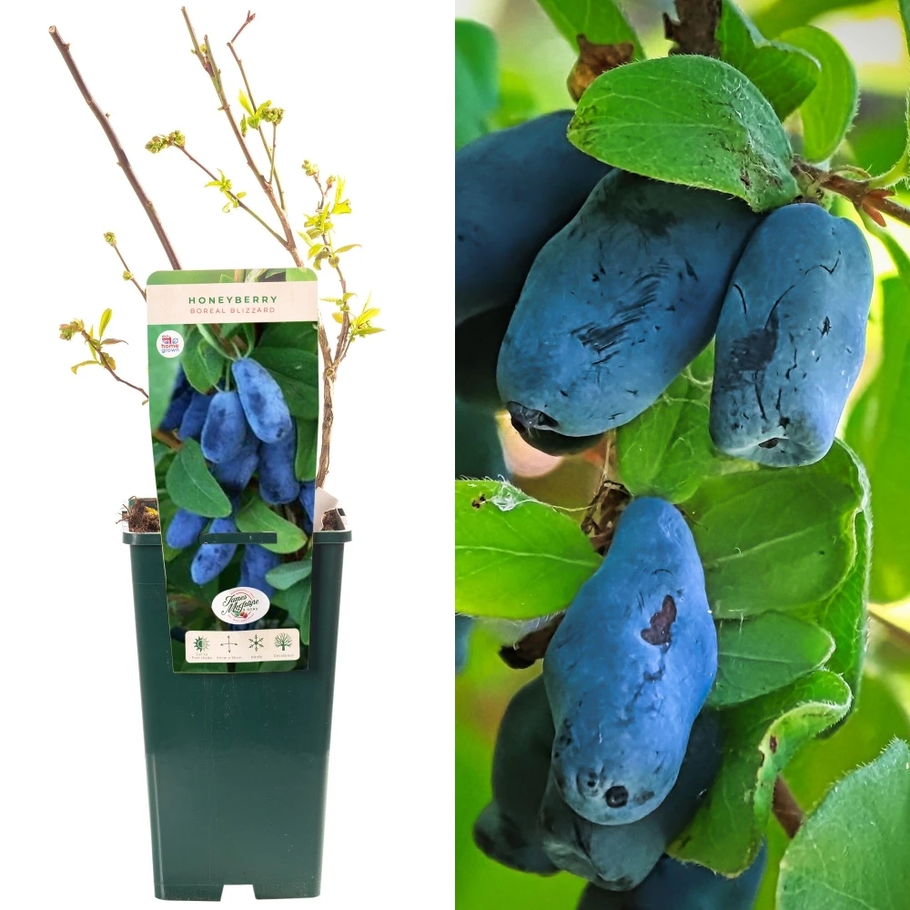 Lonicera caerulea edulis is a hardy fruit plant which has gained popularity for their sweet edible berries. Boreal Blizzard is a variety that is valued for its productivity and fruit size. It boasts one of the largest, heaviest berries of any honeyberry cultivar and will make a great addition to the fruit plant corner in your garden. Their sweet berries are best enjoyed fresh, frozen or juiced.