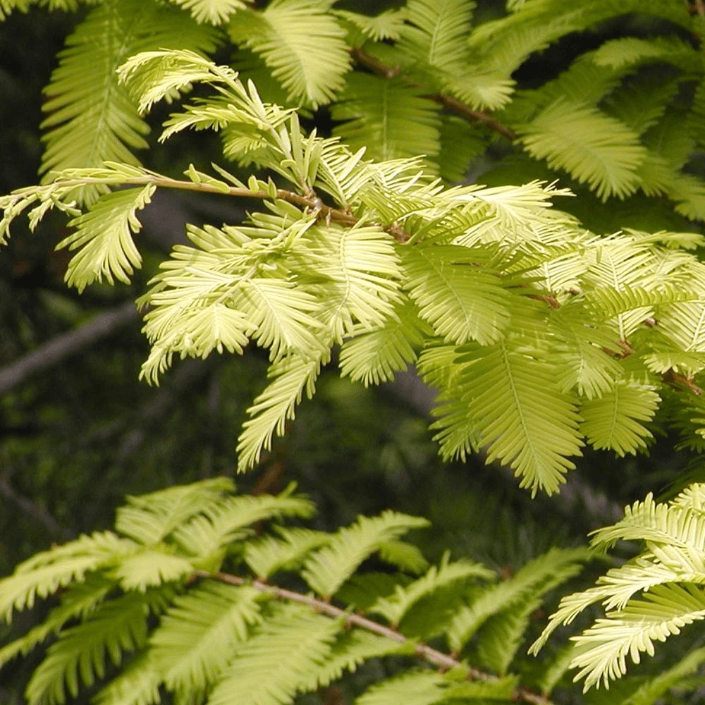 The Metasequoia ‘Gold Rush’ otherwise known as the Golden Dawn Redwood is a large deciduous tree with pale green leaves which change in the Autumn, it also has a reddish-brown bark. The Gold Rush is a conifer with a vaguely conical outline whilst young, with soft yellow needles that become green as the tree matures.