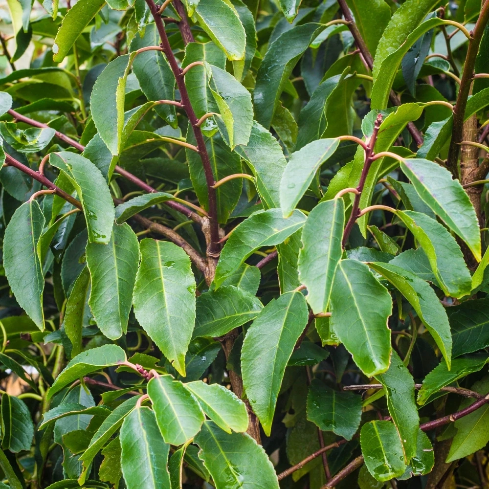 Prunus Lusitanica Angustifolia Portuguese Laurel plants are garden shrubs which are perfect as bushy hedging or for creating garden screening for privacy. Long and slender leaves are glossy and vibrant green, with small white flowers blooming against the green backdrop throughout the spring, making way for small red berries in autumn.