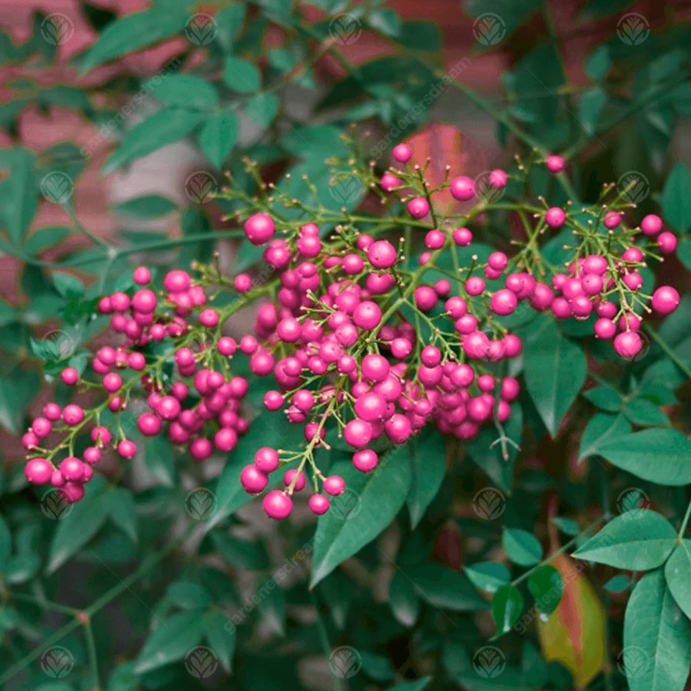 The Sorbus vilmorinii ‘Pink Charm’ is a deciduous tree more commonly known as Vilmorinโs Rowan. This variety has large green fern-like leaves that have multiple leaflets, these turn gold in the Autumn. Small white flowers followed by large pink fruits appear in the Summer and last through the Autumn. The Sorbus vilmorinii has an upright habit; this variety is hardy and will thrive in most soil types. The Pink Charm is best planted in a full sun or partially shaded location.