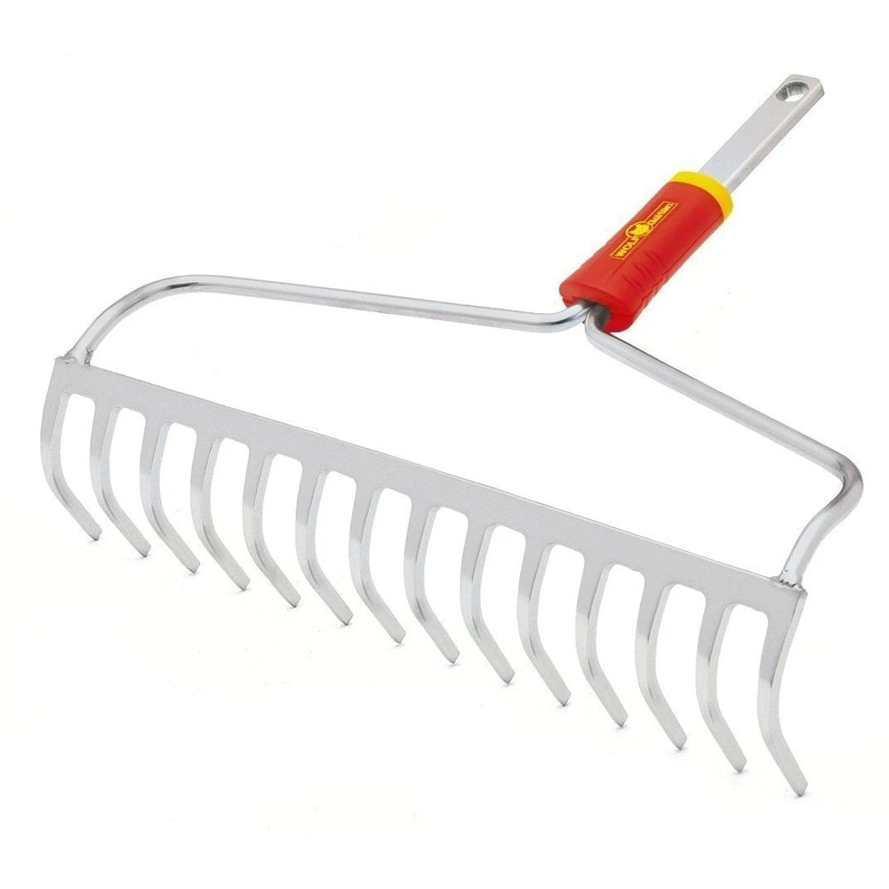 The Wolf-Garten multi-change 40cm wide Bow Rake is perfect for smoothly raking soil and gravel. The evenly spaced solid steel curved teeth allows the rake to pulled through the soil with ease, and the flat top can be used to level seed beds.